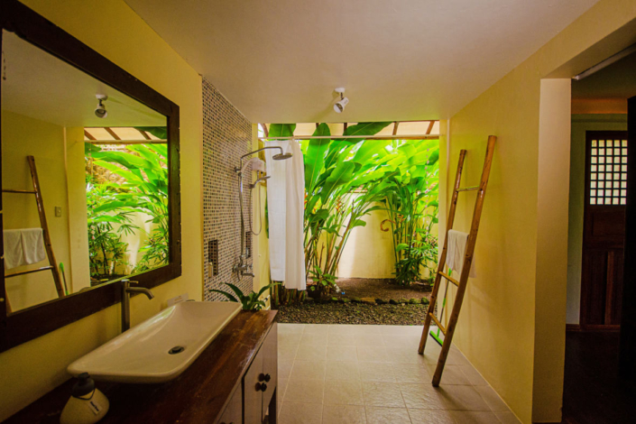 Die Beach Front Villa befindet sich in der Nähe des Strandes und der Sunset Bar. Neben einem Schlafzimmer hat die Villa zusätzlich ein Wohnzimmer mit gemütlichem Sofa. Diese Zimmerkategorie ist die einzige mit einem komplett geschlossenen Badezimmer.